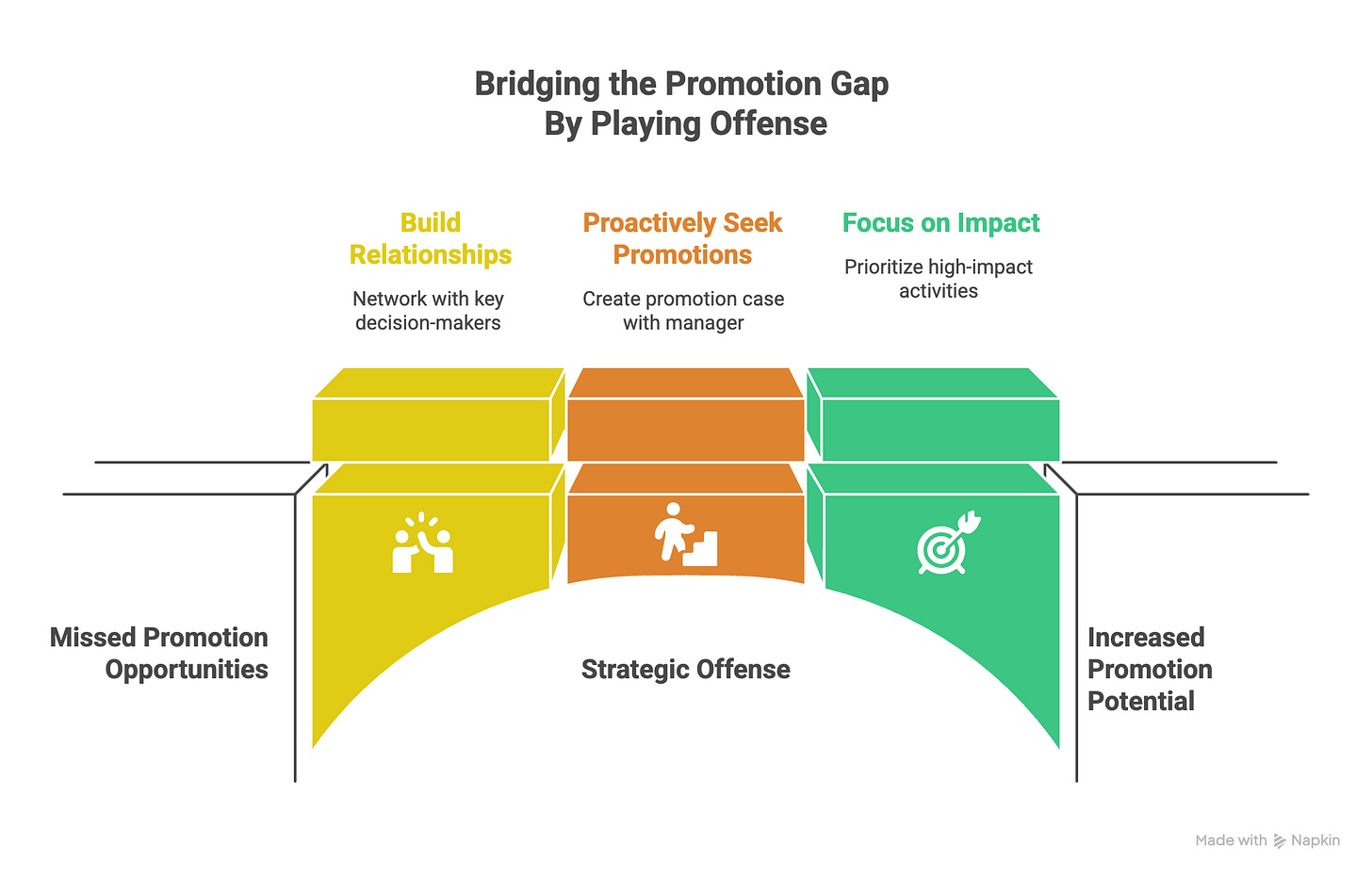 The promotion system feels rigged because it rewards self-leadership in a world that trains us to seek external validation. You can't think about your promotion in one day, or even one month, it's about being honest with yourself about how you're spending your time, having allies who can speak for you, and trusting yourself enough that the promotion becomes acknowledgment rather than validation.