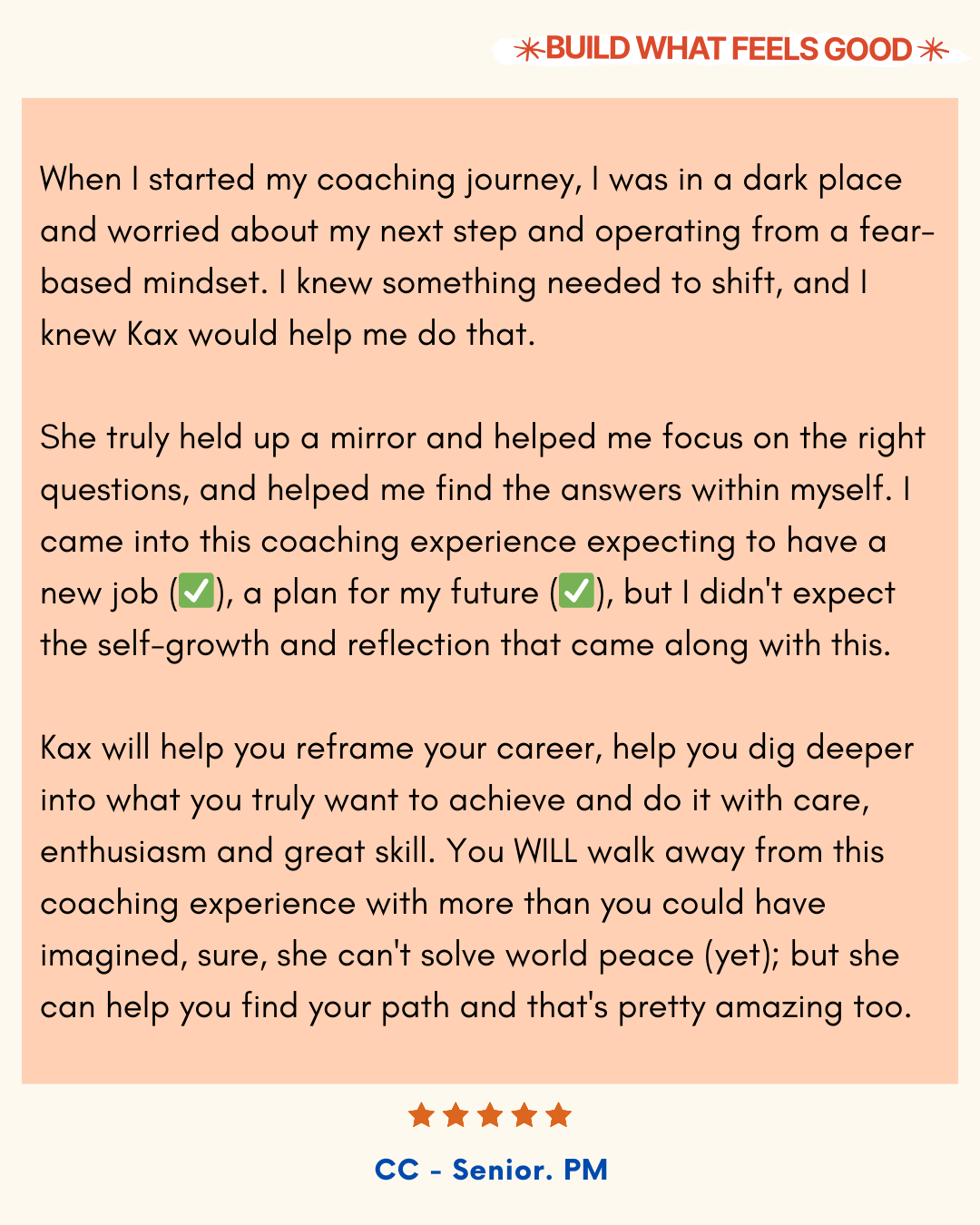 Book a discovery call with me and let's talk about how coaching might be able to help you with your career.